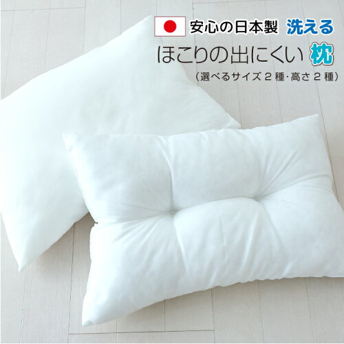 日本製 ほこりの出にくい枕 約43×63cm or 約35×50cm まくら 洗える シンプル 無地 白 送料無料